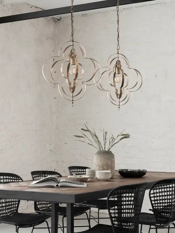 Heb je een donker interieur met veel hout en zwart of juist een strak interieur met lichte elementen? Hanglamp Chandelier gold brengt warmte en sfeer, dat perfect is voor elke interieurstijl. Boven de eettafel in een groepje van twee, maar ook alleen is de lamp echte eyecatcher. Het open en luchtige design zorgt voor een knus schaduwspel op de muur. Zo laat je de zon ook op donkere dagen schijnen. Hanglamp Chandelier is goud van kleur met een verweerde look. De lamp heeft een afmeting van 65x53x45 cm en is exclusief de lichtbron.