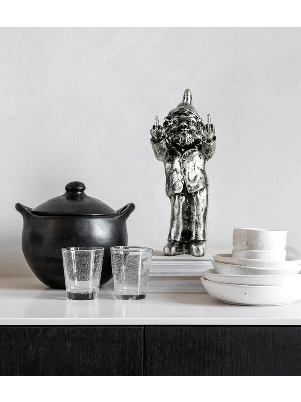 In een sfeervol interieur vol zwarte details, velvet en marmer voegen ze ambiance, luxe en een speelse touch toe. Maar ook in andere interieurstijlen vind je er vast een mooi plekje voor. De beelden zijn gemaakt van polystone, een zwaar kunststeen van goede kwaliteit. De kabouter in zilver heeft een afmeting van 35x15x4 cm en is verkrijgbaar in verschillende kleuren.