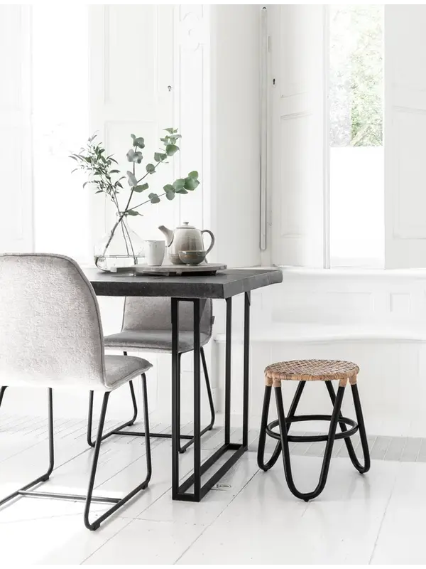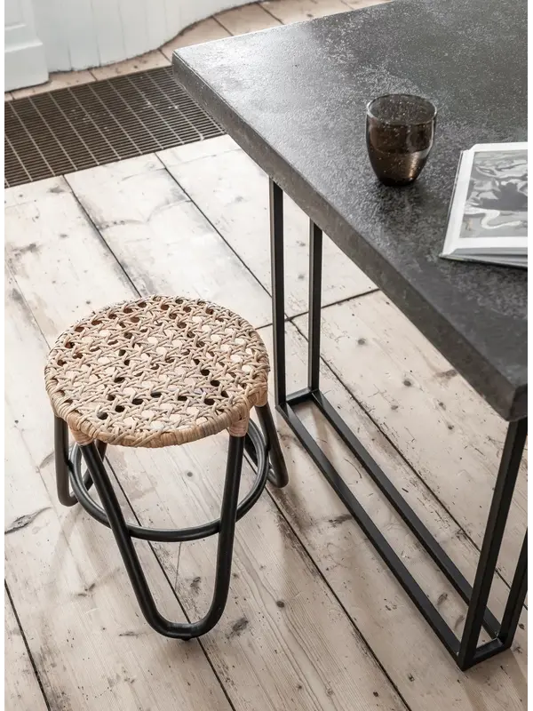 Stoelen, kasten, manden, lampenkappen of kussens. We maken van alles door natuurlijke materialen te vlechten of weven. Rotan wordt vervaardigd uit klimpalmen, in dunne repen gesneden en gebruikt om krukje Biarritz in elkaar te vlechten. Een rotan krukje geeft je interieur niet alleen een natuurlijke, retro uitstraling, maar door het snelle groeien van de palmen en de gemakkelijke oogst, is het verbouwen ook nog eens duurzaam en sociaal verantwoord. Krukje Biarritz is gevlochten van rotan en verkrijgbaar met een naturel of zwart onderstel. Het krukje heeft een afmeting van 45xØ45 cm.