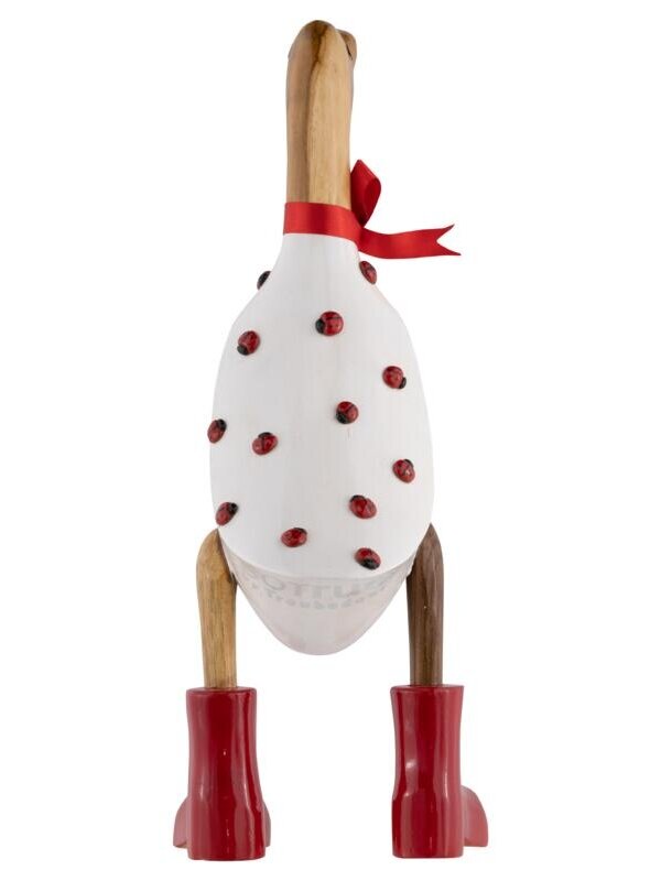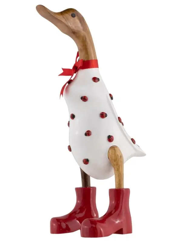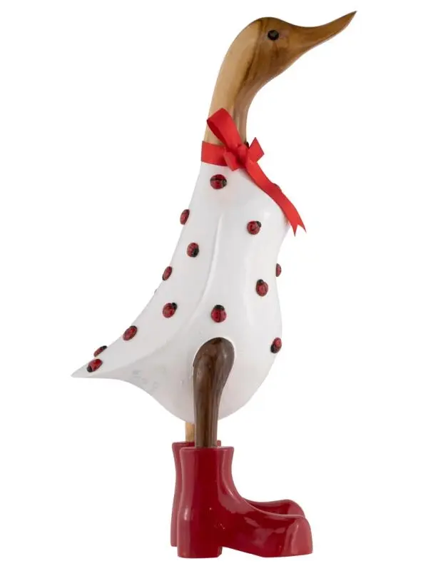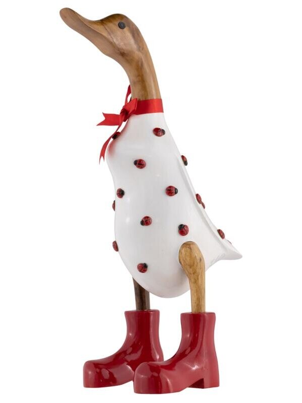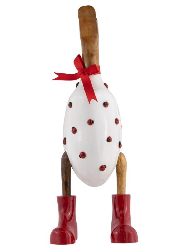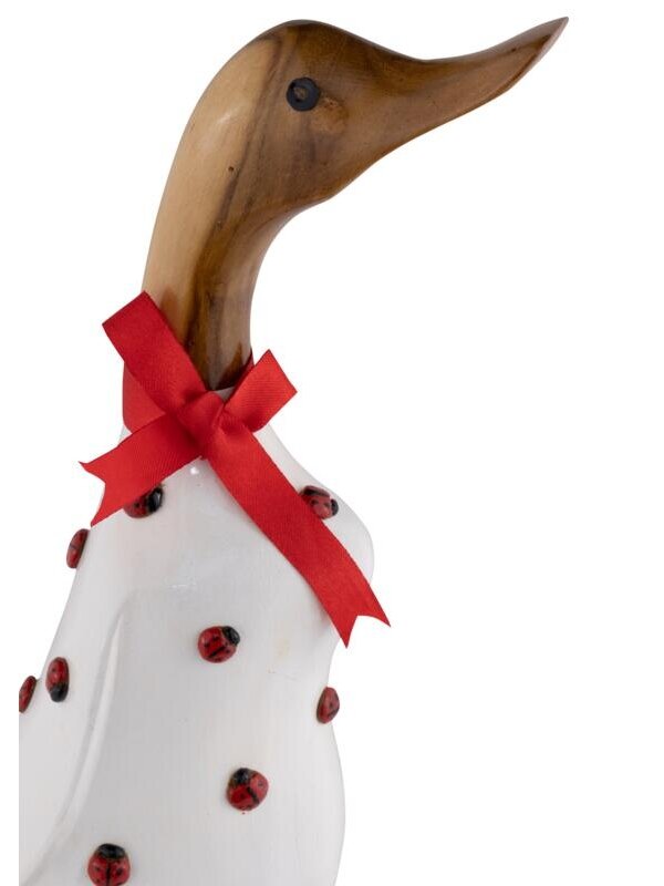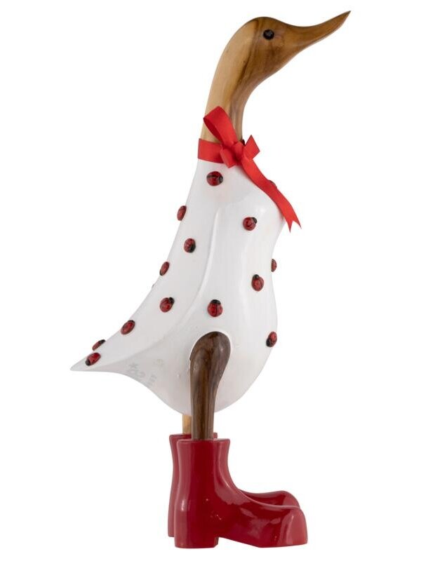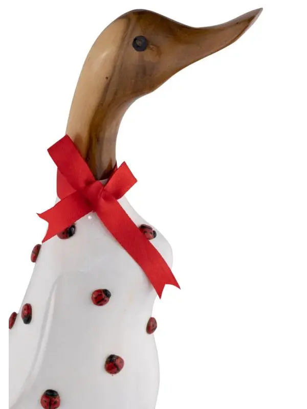 Duck Sylvie draagt een jurkje vol lieveheersbeestjes. Zo brengt dit schattige stijlicoon ook nog eens geluk. Waar zet jij haar neer? Onze Ducks komen in verschillende thema's. Zo heb je voor iedere feestdag, beroep of andere gelegenheid een unieke eend. Plaats ze samen in een vitrinekast van De Troubadour en creëer één grote Duck familie.