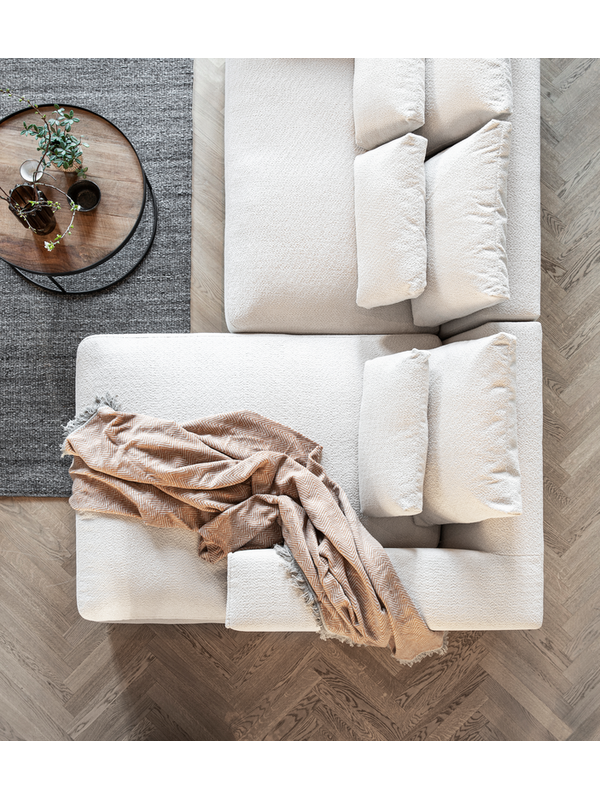 Bank Bubble is een bank om op weg te dromen. Een echte familie – en loungebank, waarop je kunt relaxen met het hele gezin. Bubble is uitgerust met brede armleuningen en losse kussens, waardoor de bank een gezellige en relaxte aanblik krijgt. Bank Bubble staat op lage blokpootjes en beschikt verder over een royale longchair en diepe zit. De zichtbare kapnaden zorgen voor een stoere finishing touch. Kruip onder een heerlijke plaid en zak onderuit met je favoriete serie of boek.