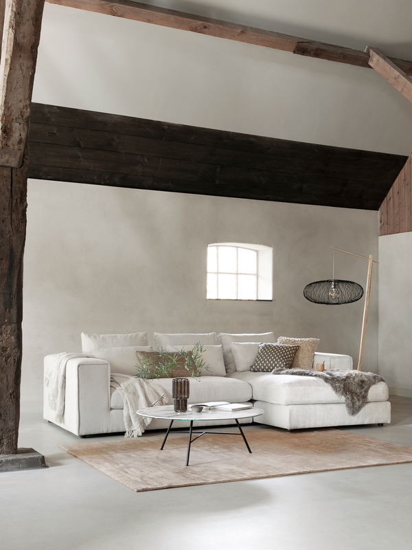 Bank Bubble is een bank om op weg te dromen. Een echte familie – en loungebank, waarop je kunt relaxen met het hele gezin. Bubble is uitgerust met brede armleuningen en losse kussens, waardoor de bank een gezellige en relaxte aanblik krijgt. Bank Bubble staat op lage blokpootjes en beschikt verder over een royale longchair en diepe zit. De zichtbare kapnaden zorgen voor een stoere finishing touch. Kruip onder een heerlijke plaid en zak onderuit met je favoriete serie of boek.