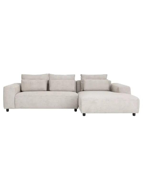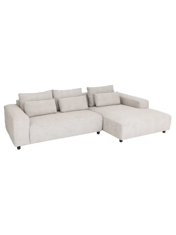 Loungebank Naomi gunt je een comfort waar je van kan genieten! De zachte stof geeft een luxe uitstraling en met de verschillende kussens kan je makkelijk van houding veranderen, of je nou liever relaxter of actiever zit. De opstelling is ook gespiegeld verkrijgbaar. De afmetingen van de bank zijn 284x176 cm en wordt geleverd inclusief rug- en lendekussens.