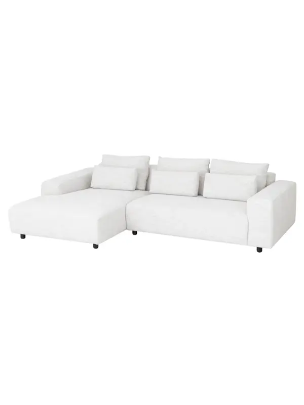 Loungebank Naomi gunt je een comfort waar je van kan genieten! De zachte stof geeft een luxe uitstraling en met de verschillende kussens kan je makkelijk van houding veranderen, of je nou liever relaxter of actiever zit. De opstelling is ook gespiegeld ve