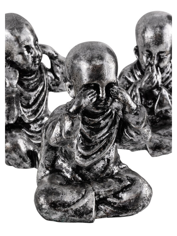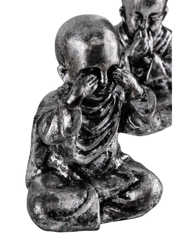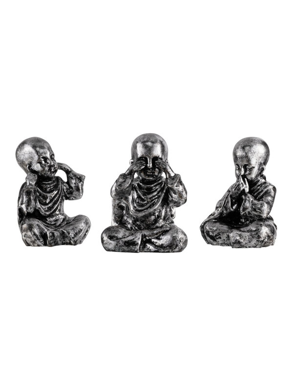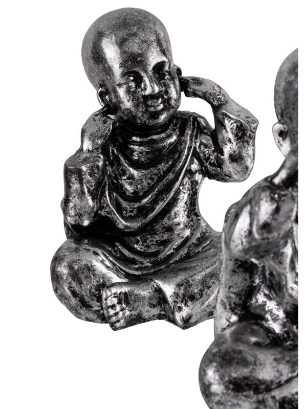 In een sfeervol interieur vol zwarte details, velvet en marmer voegen ze ambiance, luxe en een speelse touch toe. Maar ook in andere interieurstijlen vind je er vast een mooi plekje voor. De beelden zijn gemaakt van polystone, een zwaar kunststeen van goede kwaliteit. De monniken in zilver zijn een set van 3 en hebben een afmeting van 25x17x13 cm. Verkrijgbaar in verschillende kleuren.