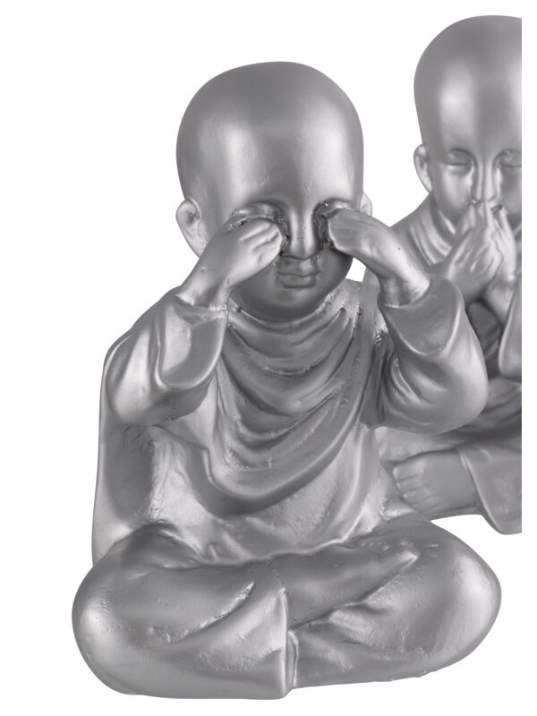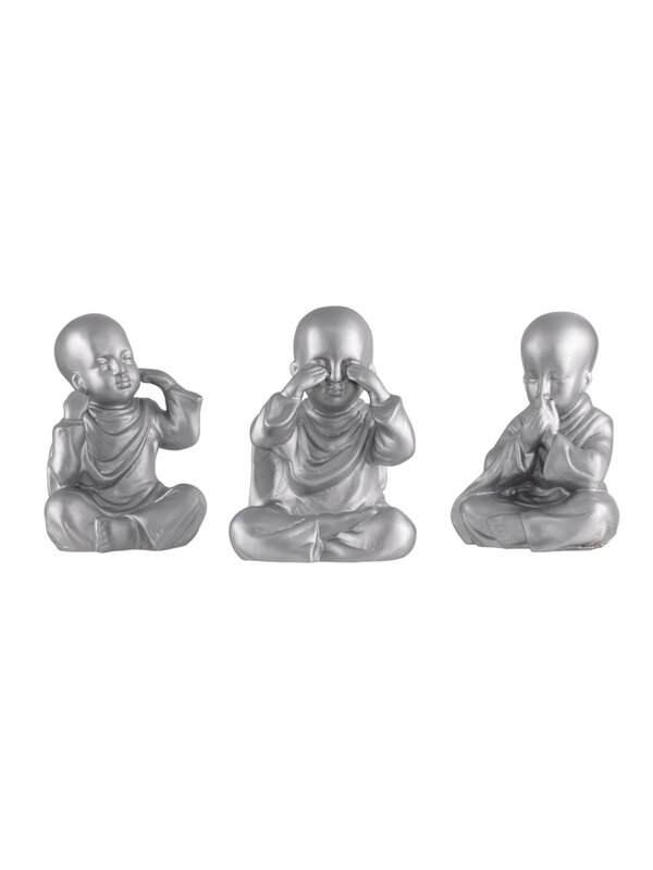 In een sfeervol interieur vol zwarte details, velvet en marmer voegen ze ambiance, luxe en een speelse touch toe. Maar ook in andere interieurstijlen vind je er vast een mooi plekje voor. De beelden zijn gemaakt van polystone, een zwaar kunststeen van goede kwaliteit. De monniken in zilver zijn een set van 3 en hebben een afmeting van 25x17x13 cm. Verkrijgbaar in verschillende kleuren.