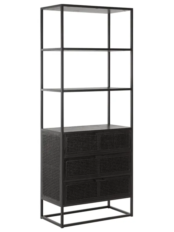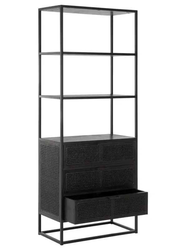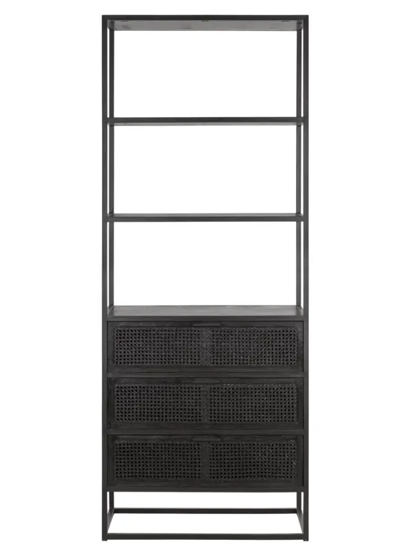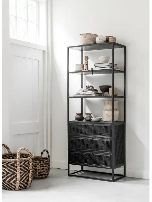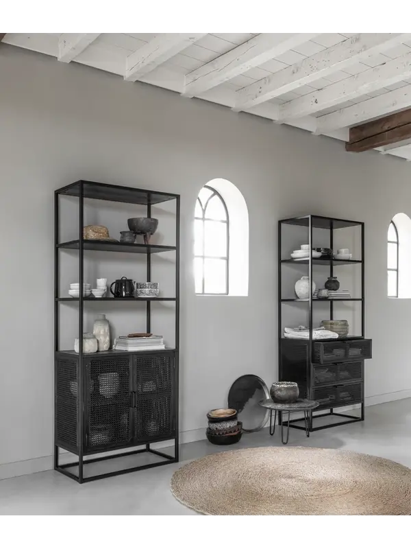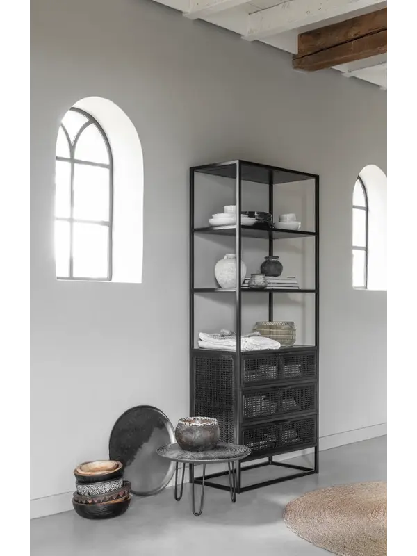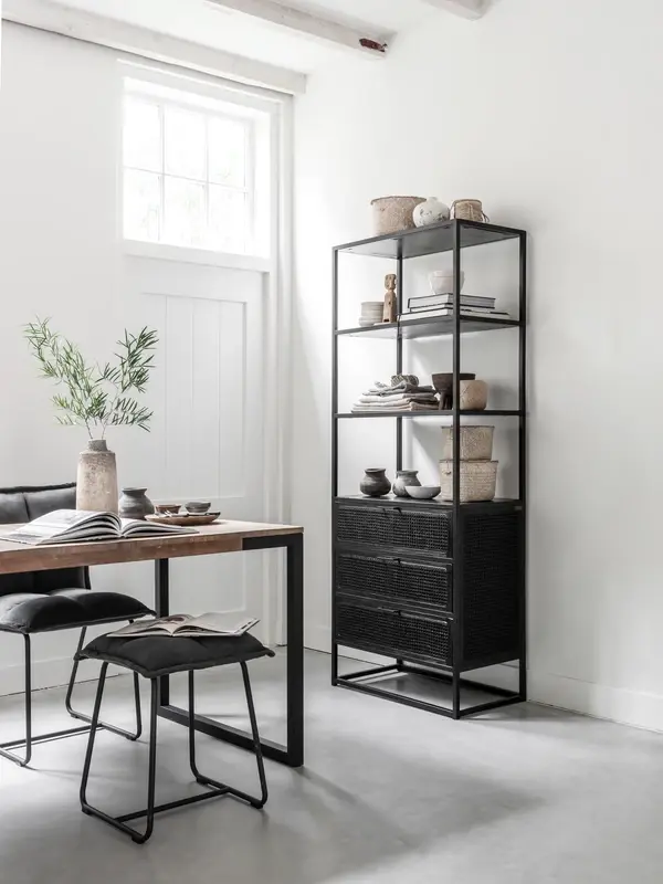 Boekenkast Spiderman van het Nederlandse merk Must Living heeft een unieke combinatie van metaal, gerecycled hout en webbing. De vlechttrend webbing is weer helemaal terug van weggeweest en zorgt voor een bohemien en retro uitstraling. Dit is perfect te combineren in de interieurstijlen van nu. De boekenkast heeft 3 lades met opbergruimte en 3 vakken om je mooiste boeken en accessoires te laten zien.