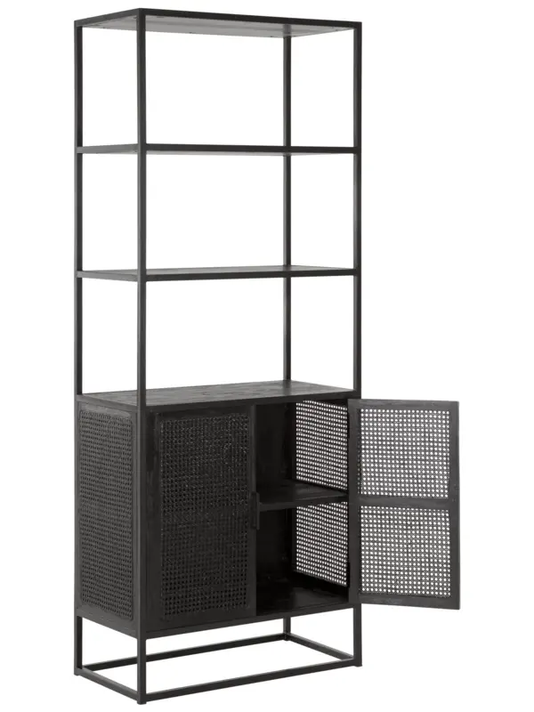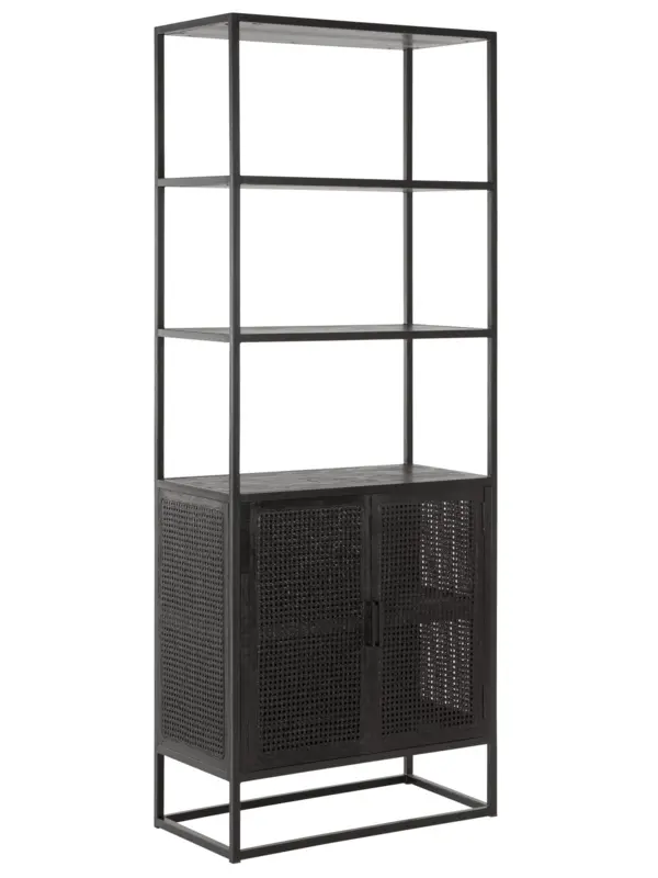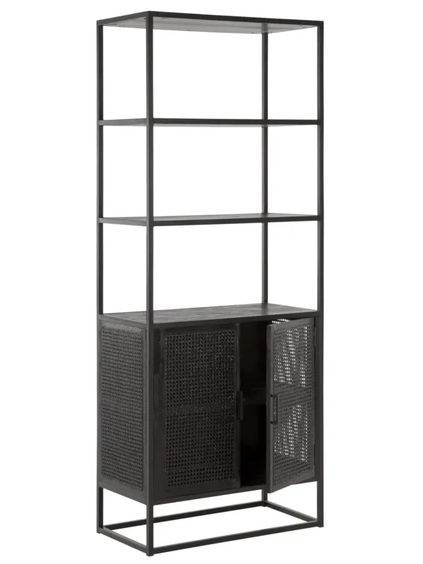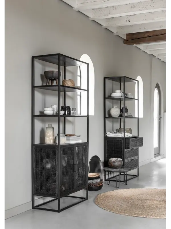 Boekenkast Spiderman van het Nederlandse merk Must Living heeft een unieke combinatie van metaal, gerecycled hout en webbing. De vlechttrend webbing is weer helemaal terug van weggeweest en zorgt voor een bohemien en retro uitstraling. Dit is perfect te combineren in de interieurstijlen van nu. De boekenkast heeft 2 deuren met opbergruimte en 3 vakken om je mooiste boeken en accessoires te laten zien.