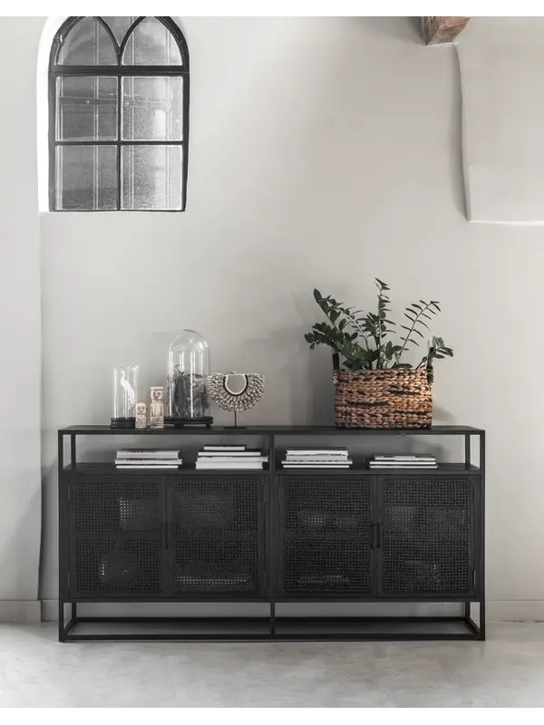 Dressoir Spiderman van het Nederlandse merk Must Living heeft een unieke combinatie van metaal, gerecycled hout en webbing. De vlechttrend webbing is weer helemaal terug van weggeweest en zorgt voor een bohemien en retro uitstraling. Dit is perfect te combineren in de interieurstijlen van nu. Het dressoir heeft 4 deuren met veel opbergruimte.