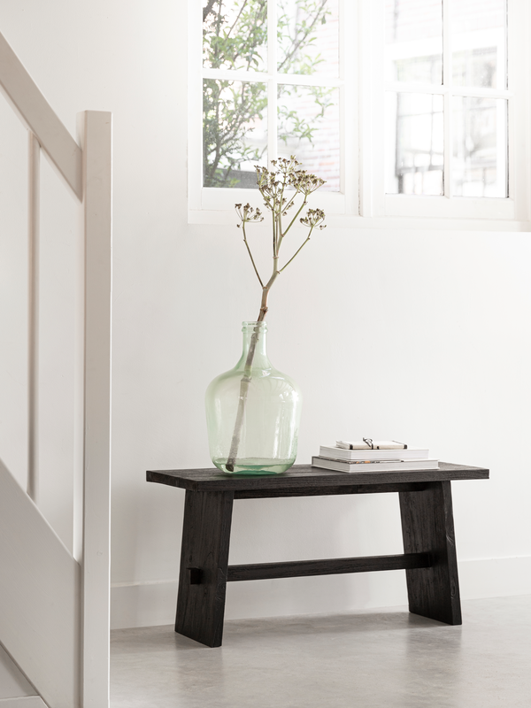Ben je op zoek naar een echte eyecatcher voor in huis? Bankje Tokyo zal alle aandacht krijgen die ze verdient! De diepe zwarte kleur zorgt voor een opvallende uitstraling en geeft het bankje extra karakter. Het bankje is gemaakt van prachtig geborsteld gerecycled teakhout. Gebruik Tokyo als bankje die een extra zitplek biedt of zet het bankje tegen een lege muur aan met een aantal accessoires en je bent good to go!
