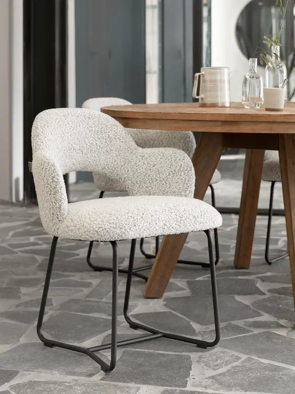 MUST Living eetkamerstoel Vista boucle lichtgrijs