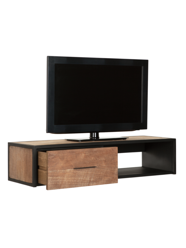De meubels uit onze Elemental Collection stralen rust en warmte uit. De collectie bestaat uit verschillende tv-meubelen, bartafels en een side table die de basis vormen voor een stijl- en sfeervol interieur. De meubels zijn gemaakt van gerecycled teak dat wordt gecombineerd met stoere, zwartstalen frames. Doordat de meubels zo eenvoudig, maar stijlvol zijn vormgegeven, passen deze in ieder interieur en zijn ze met alles te combineren! MUST Living hangend tv-meubel Elemental heeft een afmeting van 25x110x38 cm.