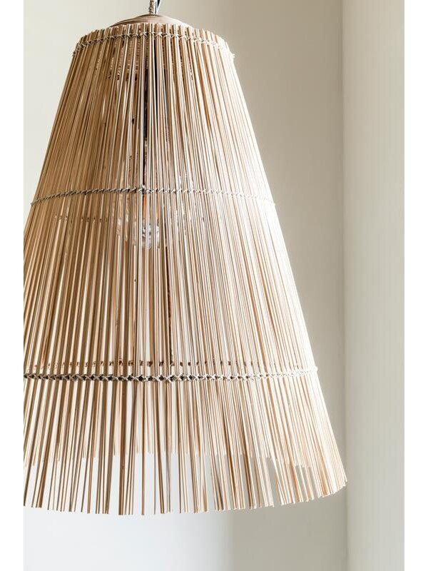 Lamp Sanur is gemaakt van de bladeren van een kokosnootboom. De bladeren worden gedroogd en gebleekt, waardoor er stengels van de bladeren kunnen worden gesneden. Deze stengels worden samen gevormd tot een prachtige lamp. MUST Living hanglamp Sanur heeft