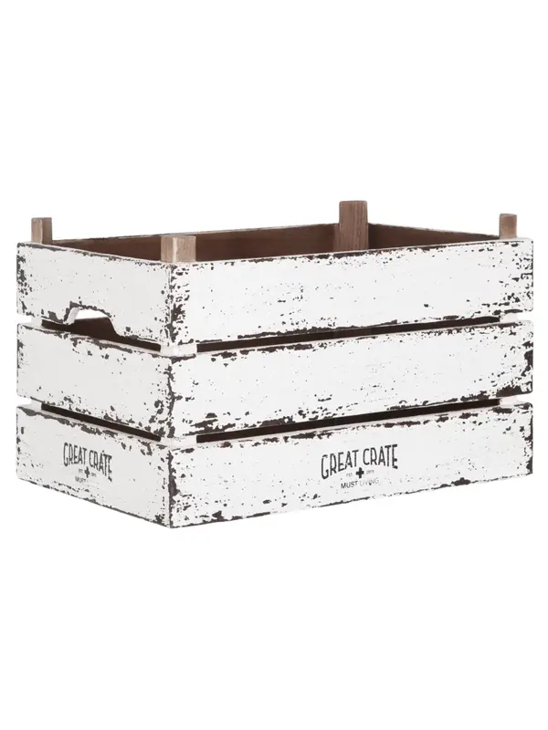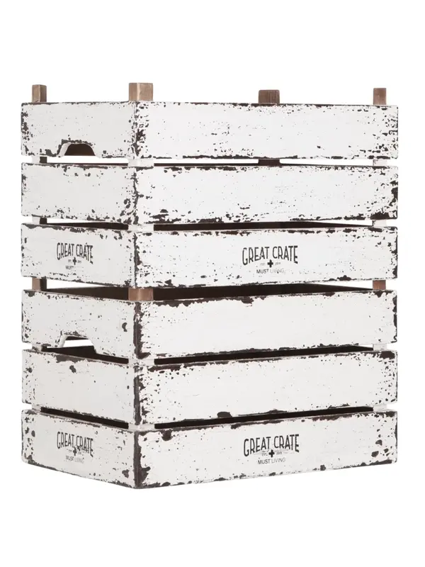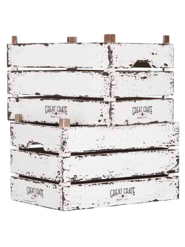 De kratten Great Crate van MUST Living zijn stapelbaar en van stevige kwaliteit. De kratten zijn net als alle andere meubels en accessoires uit de Snow White collectie voorzien van een mooie witte finish met een antieke uitstraling. De binnenkant van de k