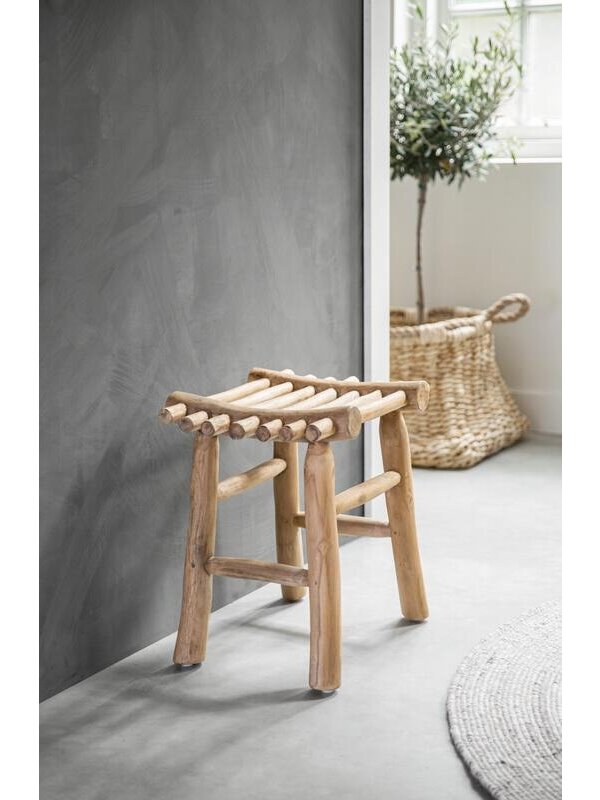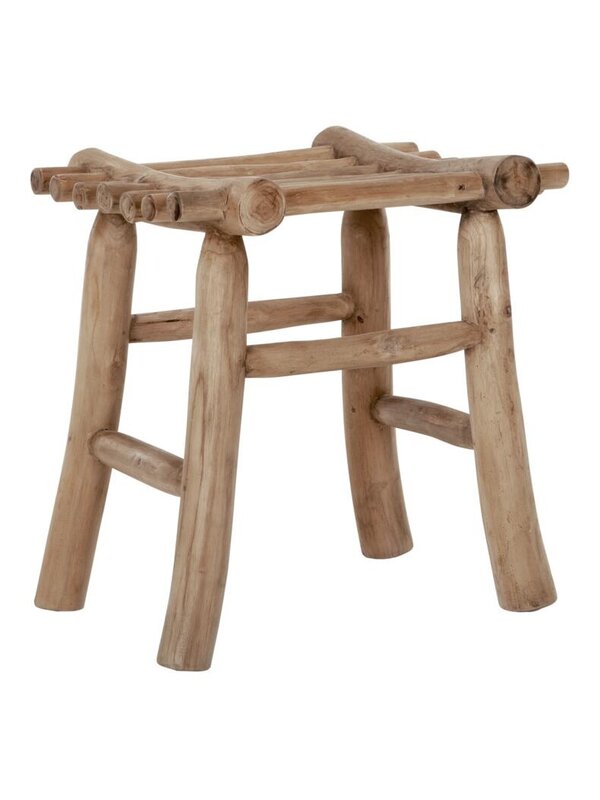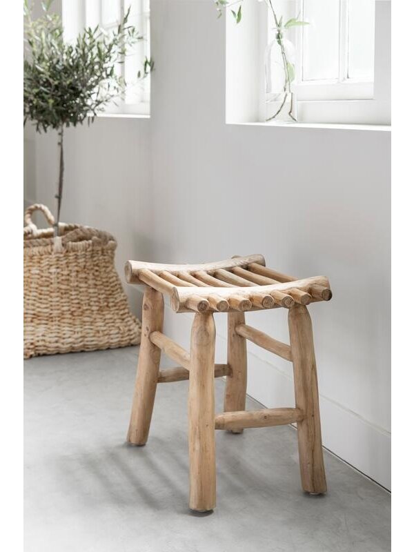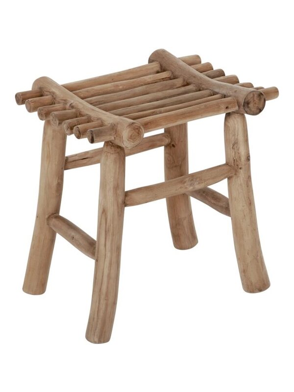 Wanneer de takken van de teakboom net te dun zijn om te verwerken tot houten planken, dan maakt het Nederlandse merk MUST Living er bohemien bankjes of krukjes van. De organische vormen van het teakhout zorgen voor een vriendelijk en zacht uiterlijk. Daarbij is het materiaal duurzaam en mega sterk. Let op: doordat de meubels met de hand en van natuurlijke materialen worden gemaakt, zijn deze elk uniek. Kruk Bohemien heeft een afmeting van 48x48x37 cm.