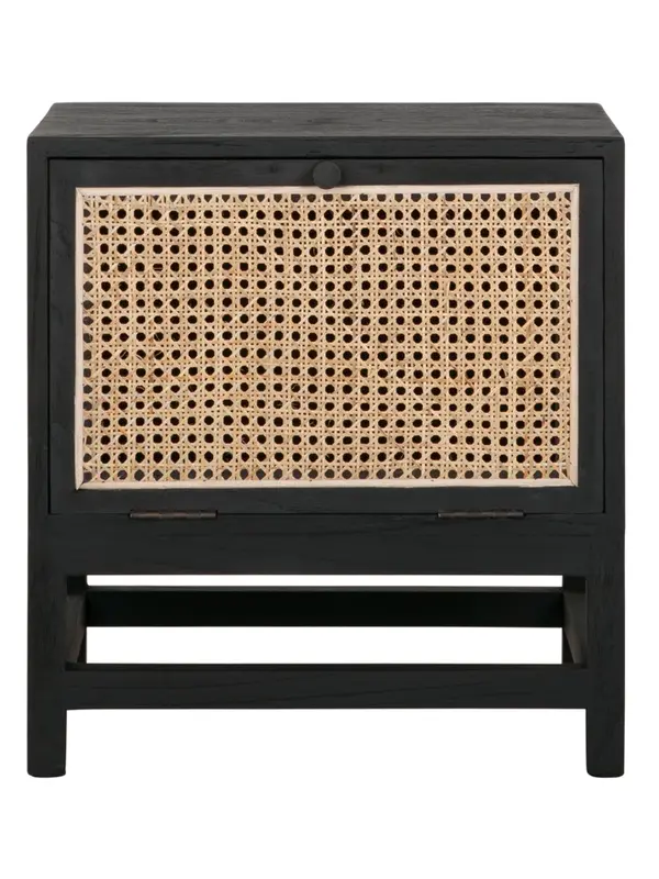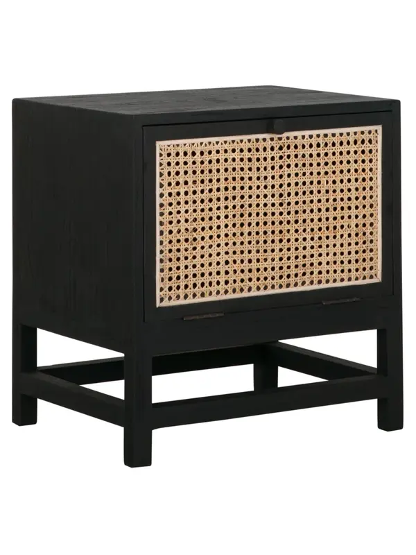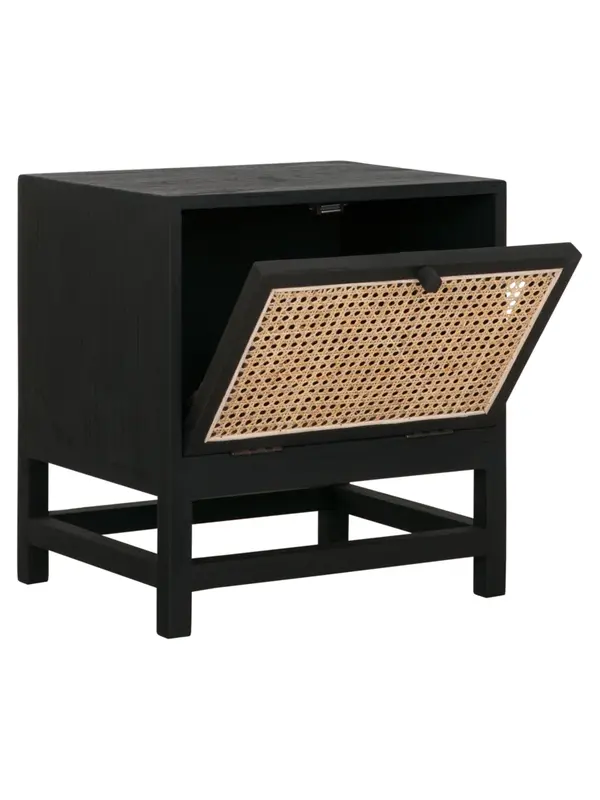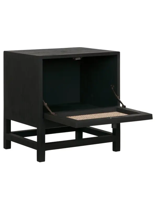 aak kennis met onze geweldige Raffles Collection: een collectie vol webbing en zwart mindi-hout! De meubels uit deze collectie zijn stuk voor stuk echte blikvangers door de opvallende materialen. Het webbing bijvoorbeeld wordt gemaakt van gespleten rotan, een duurzaam en verantwoord product. Nachtkastje Raffles beschikt over een opberg vak dat wordt gesloten met een klapdeur. Het meubel past goed in een neutraal kleurenpalet gecombineerd met natuurlijke, zachte materialen. MUST Living nachtkastje Raffles heeft een afmeting van 48x45x35 cm.