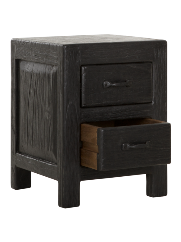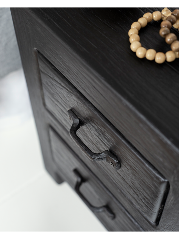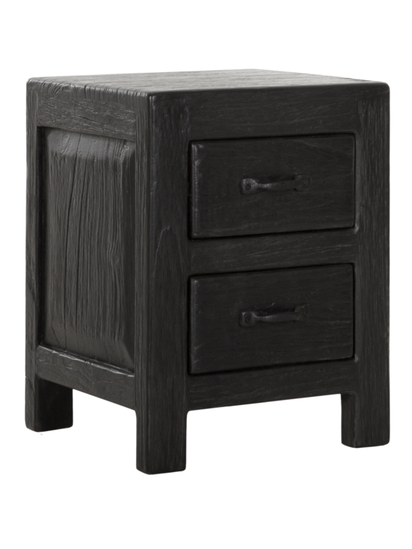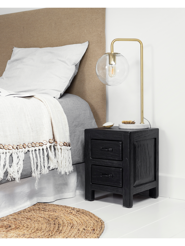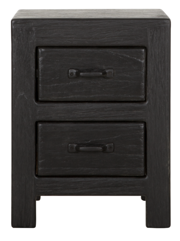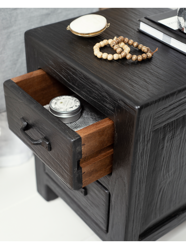 Nachtkastje Buenas Noches geeft een stoere touch aan je slaapkamer. Het kastje is gemaakt van zwart mindihout, en brengt hierdoor sfeer en geborgenheid met zich mee. Daarbij zorgt hij dat al je dagelijkse benodigdheden handig zijn opgeborgen in één van de twee lades. Het perfecte gezelschap voor een goede nachtrust! Nachtkastje Buenas Noches heeft een afmeting van 42x32x32 cm.