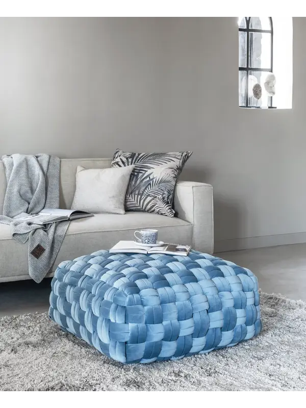 Poef Weave schuif je makkelijk bij de bank om een extra zit plek te creëren of om heerlijk je benen te laten ontspannen. De poef is bekleed met een zachte velvet stof en en straalt comfort uit! Verkrijgbaar in de kleuren wijnrood, roze, groen, blauw, lich