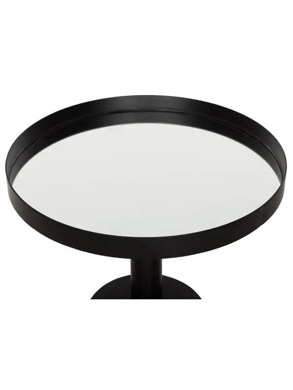 Salontafel Abu Dhabi valt op door het chique uiterlijk. De salontafel heeft een matzwart, stalen frame met hoog opstaande randen en staat op een massieve poot. En een opvallend detail: het tafelblad is een spiegel! Combineer Abu Dhabi met meerdere bijzett