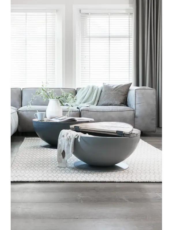 Salontafel Bowl is naast stijlvol ook nog eens super praktisch. Het tafelblad kan aan twee kanten opengeklapt worden, waardoor er spullen in de tafel kunnen worden opgeborgen. Dankzij de voet staat hij stabiel. Hij heeft een afmeting van 33x70 cm en is verkrijgbaar in de kleuren donkergrijs en lichtgrijs.