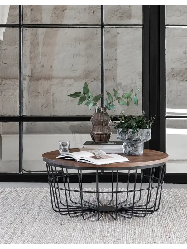Salontafel Cage is een mooie salontafel met een teakhouten blad en een opengewerkt stalen onderstel. Een ronde salontafel is ideaal om het hoekige van de kamer weg te halen en de Cage houdt de kamer ook nog eens lekker luchtig! En mocht je minder ruimte h
