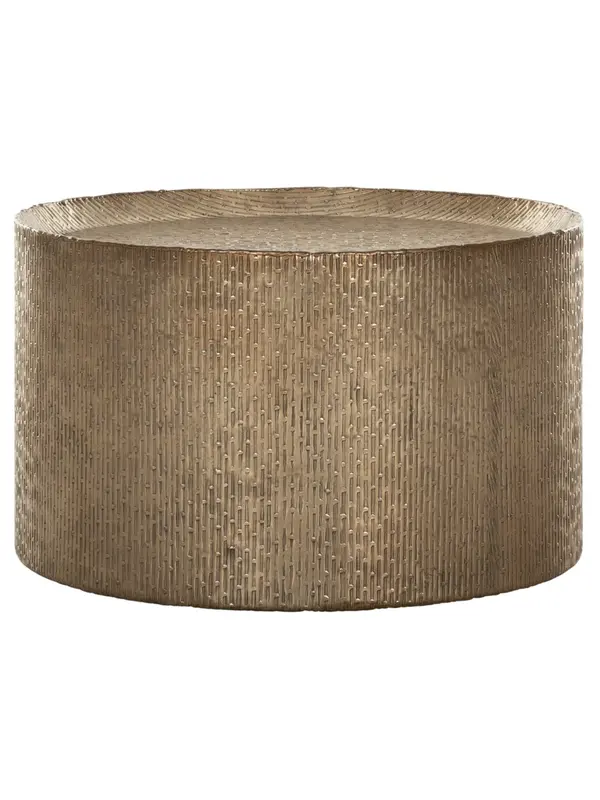 Met salontafel Drum maak je echt een statement in de woonkamer. De gouden kleur, het reliëf en het robuuste uiterlijk maken deze salontafel een eyecatcher én super chique. De salontafel is verkrijgbaar in twee maten, zo kun je de Drum alleen of in een duo neerzetten. Salontafel Drum heeft een afmeting van 35xØ60 cm.