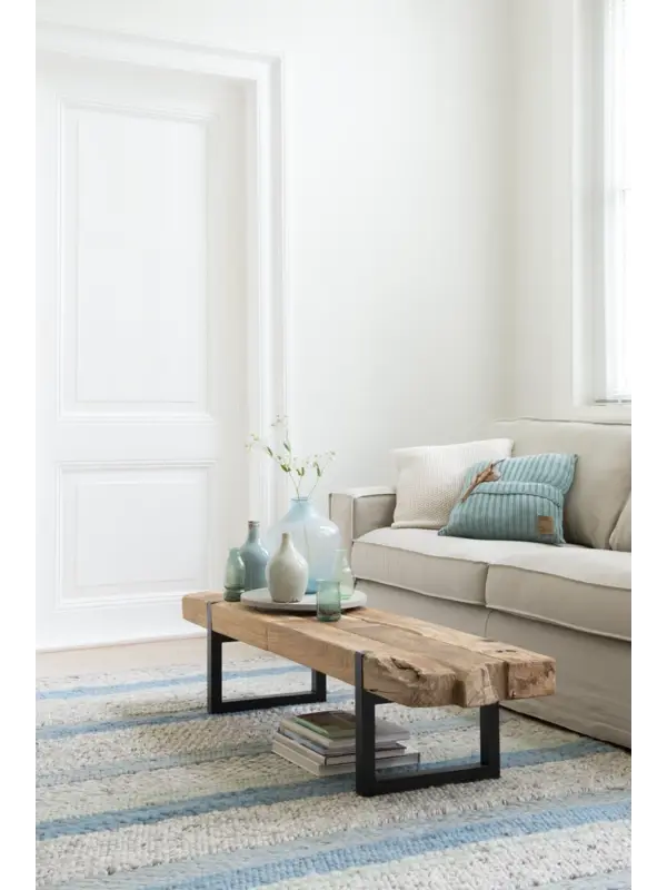 Salontafel Magnum is gemaakt van oude teakhouten balken. De balken hebben een dikte van circa 8 centimeter en geven de tafel karakter. De tafel is afgewerkt met een zwart metalen frame, waardoor hij een stoere uitstraling heeft.
