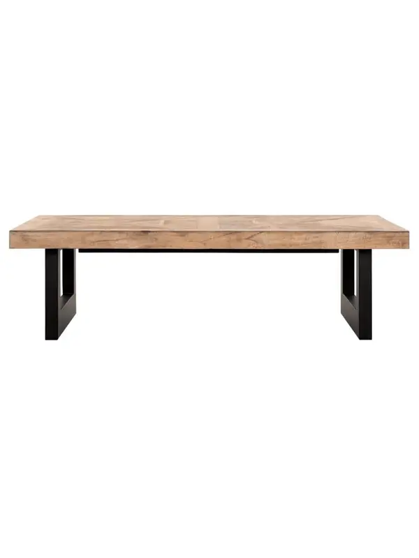 Salontafel Parket heeft een blad van gerecycled teakhout. Niet alleen duurzaam, maar ook robuust en mega trendy. Het onderstel is gemaakt van stevig metaal en bestaat uit twee dikke u-poten. Doordat het materiaal van deze tijdloze eettafel van natuurlijke