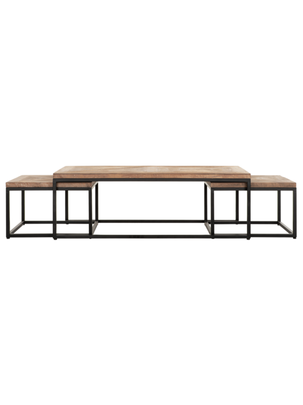 Salontafel Parket is verkrijgbaar in twee verschillende kleuren en bestaat uit een set van drie verschillende tafeltjes. De tafeltjes kun je samen neerzetten, of verspreiden over de ruimte. De salontafeltjes hebben elk een blad van gerecycled teakhout. Het frame is gemaakt van zwart metaal. De salontafels uit deze collectie zijn niet alleen functioneel, maar ook nog eens stijlvol en tijdloos! Salontafel Parket heeft een afmeting van 35x120x70 cm.