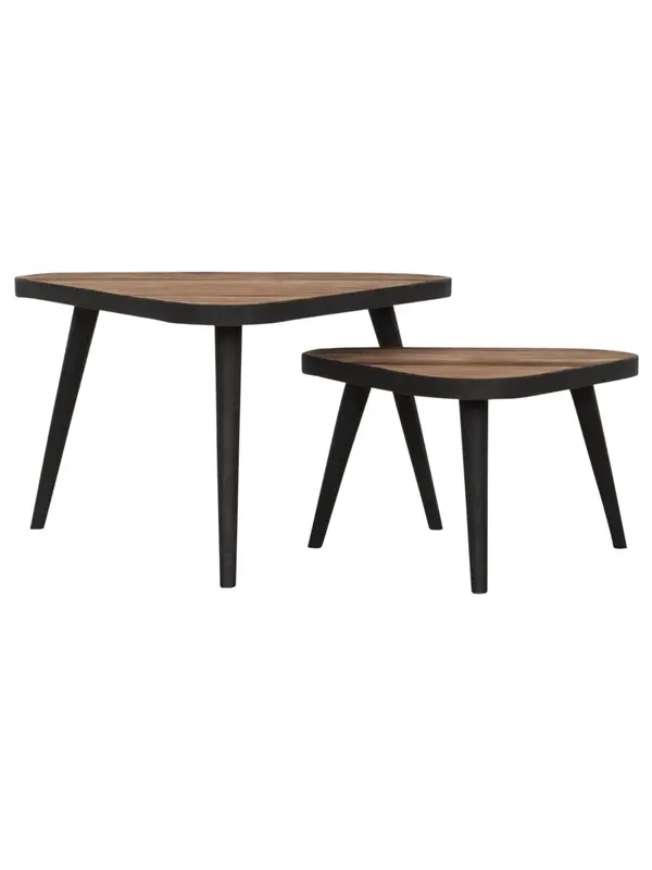 Salontafel Triangle is gemaakt van gerecycled teakhout in combinatie met een donkergrijs metalen frame. De set van 2 heeft een afmeting van 30x55x55 cm / 40x75x75 cm. Daarnaast is dit model verkrijgbaar in naturel en zwart hout. Naast je bank of bij elkaar, met deze tafels is je zithoek klaar.