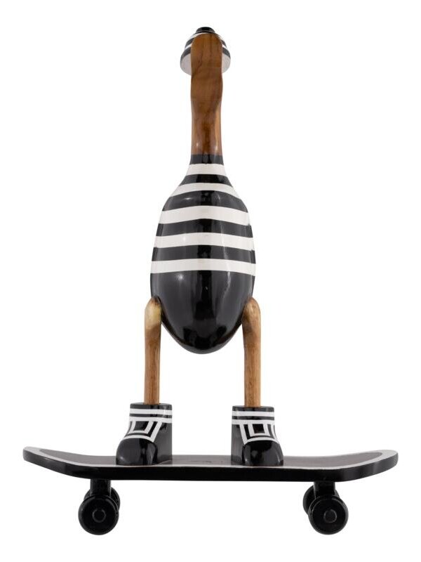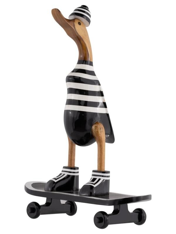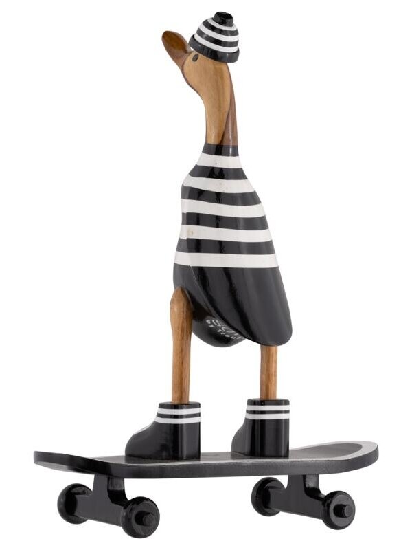 Duck Dylan is een eigenwijs eendje, dat het liefst de hele dag op zijn skateboard te vinden is. Voor de stoere Dylan is geen enkele half-pipe te stijl! Onze Ducks komen in verschillende thema's. Zo heb je voor iedere feestdag, beroep of andere gelegenheid een unieke eend. Plaats ze samen in een vitrinekast van De Troubadour en creëer één grote Duck familie.