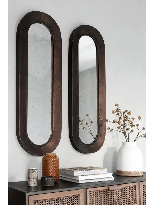 Spiegel Bonheur is met zijn maat en uiterlijk ideaal voor in de slaapkamer of hal: je kunt snel nog even je outfit checken en je maakt de ruimte tegelijkertijd optisch groter! Deze spiegel is super stoer door het gebruik van versleten staal en valt door de ronde vorm en dikke rand lekker op. Spiegel Bonheur heeft een afmeting van 100x32x5 cm.
