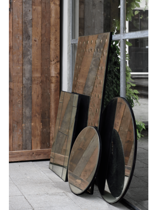 Spiegel Rivoli is gemaakt van oud glas. Het oude glas geeft de spiegel een mooie verweerde uitstraling. In de spiegel is langs de rand een sierlijk patroon verwerkt. De spiegel is afgewerkt met zwart fluweel, wat zorgt voor een luxe uitstraling. De spiege