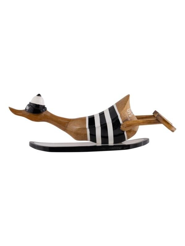 Duck Leon is klaar om de golven te trotseren. Deze Duck is het perfecte cadeau voor iemand die zich net zo thuis voelt in het water als Leon. Onze Ducks komen in verschillende thema's. Zo heb je voor iedere feestdag, beroep of andere gelegenheid een unieke eend. Plaats ze samen in een vitrinekast van De Troubadour en creëer één grote Duck familie.