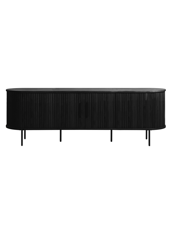 TV-meubel Barber is te gebruiken om je spullen in op te bergen, maar ook als tv-meubel. De kast wordt gekenmerkt door zijn ronde hoeken, het lijnenspel en de hoge pootjes die hem tot een stijlvolle en speelse kast maken. Achter de twee schuifdeuren bevinden zich verschillende vakken. De kast is gemaakt van eiken fineer gecombineerd met een zwart stalen pootjes en verkrijgbaar in naturel, wit, bruin en zwart. Barber is zelf eenvoudig te monteren en daardoor makkelijk voor transport.