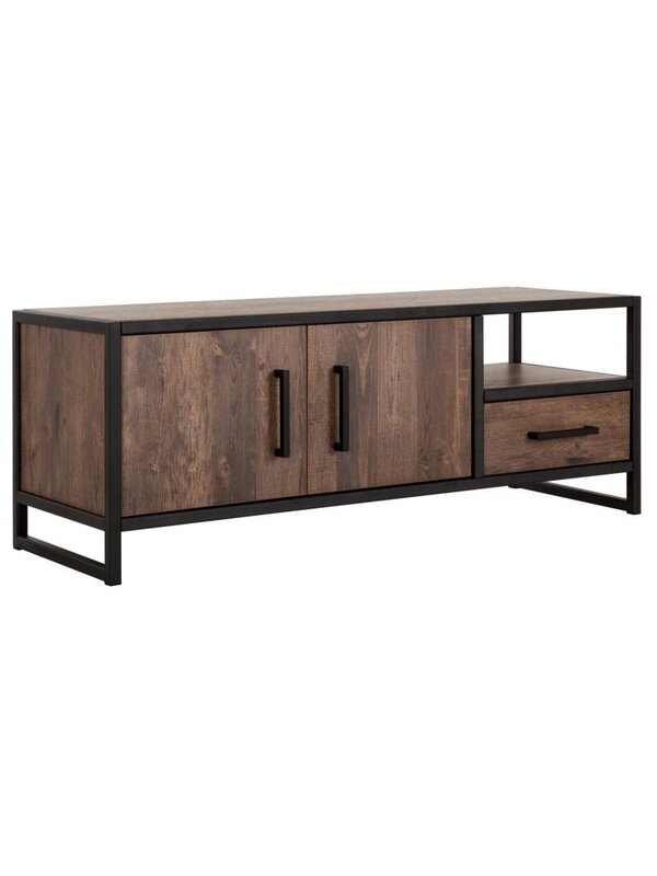 Tv-meubel Bilbao heeft een stoer, doch warm en gezellig uiterlijk. Het meubel beschikt over frame van zwart metaal en wordt verder afgewerkt met plankjes en twee deurtjes van hout. Bilbao is strak, modern en gemakkelijk te combineren met andere kleuren en stijlen. Tv-meubel Bilbao heeft een afmeting van 50x135x45 cm. Ook verkrijgbaar als eet- en salontafel.