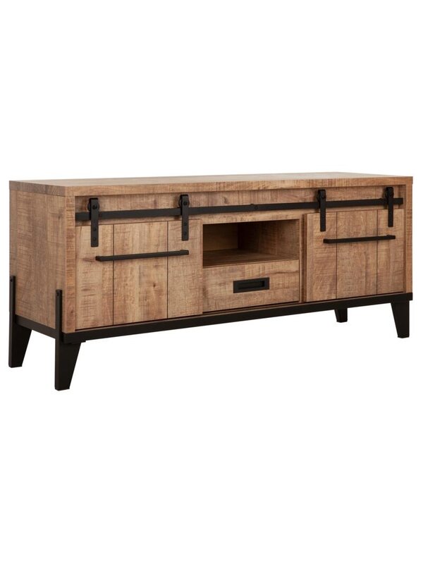 Tv-meubel Malaga is door het spannende contrast tussen de houtlook planken en het zwarte staal echt een statement in de woonkamer. De houtlook planken zijn gemaakt van hoogwaardig kunststof en bijna niet van echt te onderscheiden. Houtlook is gemakkelijk in onderhoud en bovendien kras- en slijtbestendig. De landelijke details en stoere pootjes maken dit tv-meubel helemaal af. Tv-meubel Malaga heeft een afmeting van 65x153x48 cm. Fan van dit design? Malaga is ook verkrijgbaar als bergkast, salontafels of dressoir.