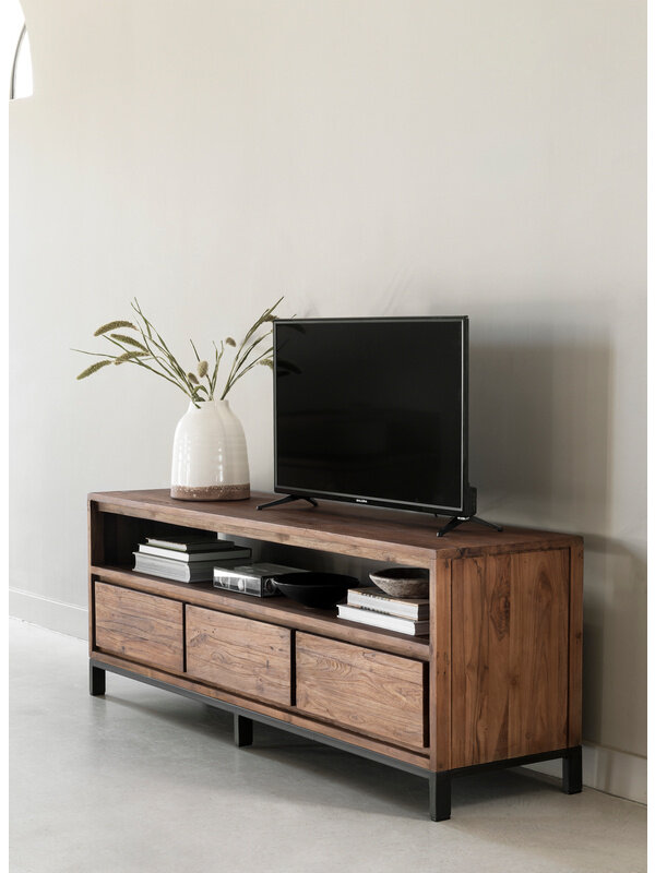 De Screen is een landelijk tv-meubel in twee verschillende maten. Het tv-meubel beschikt over twee of drie lades. De stalen pootjes zorgen voor een stoere en industriële toevoeging. TV-meubel Screen heeft een afmeting van 55x150x40 cm.