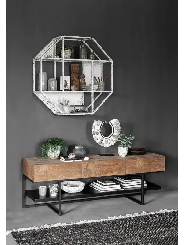 De vorm van wandrek Diamant zorgt voor een speels effect aan de wand. Het rek is gemaakt van sterk ijzer en massief hout en is afgewerkt met een antieke finish. Deze finish zorgt voor een vintage uitstraling. Verkrijgbaar in zwart en wit.