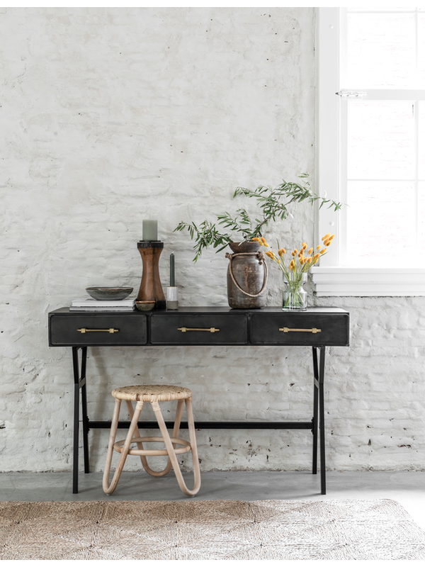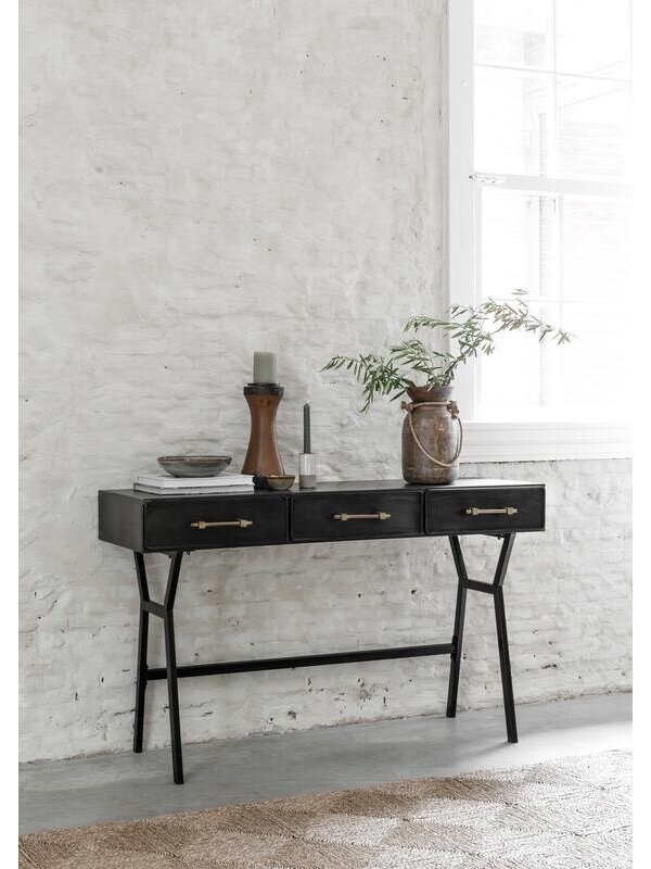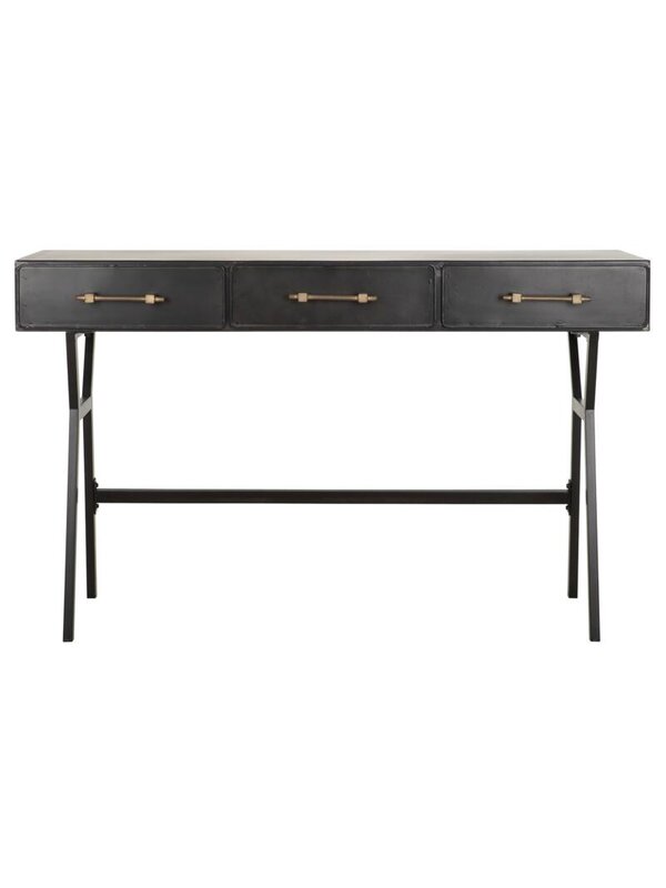 De elegante uitstraling van wandtafel Esquire trekt gelijk je aandacht naar zich toe! De wandtafel beschikt over drie lades met gouden greep en een bijzonder vormgegeven onderstel. Super stijlvol en ook nog eens handig dankzij de opbergmogelijkheden.