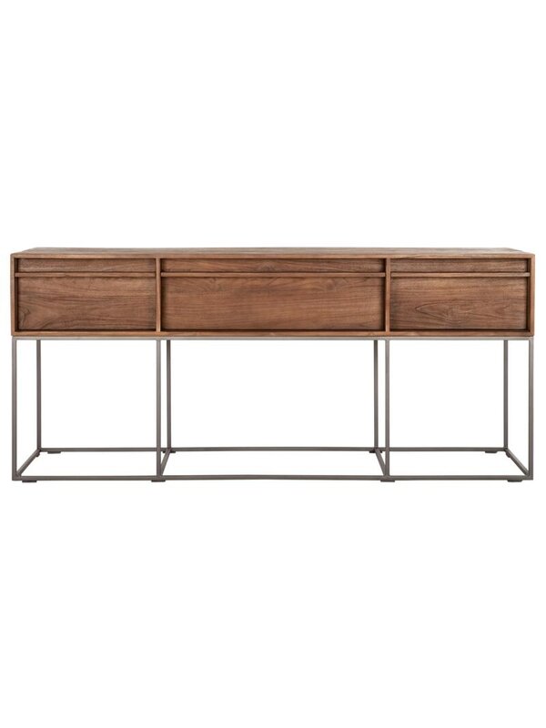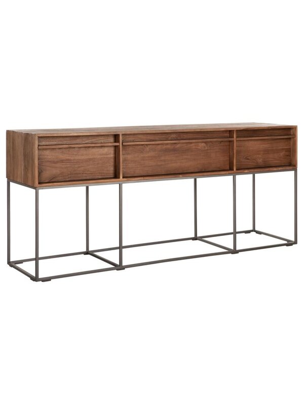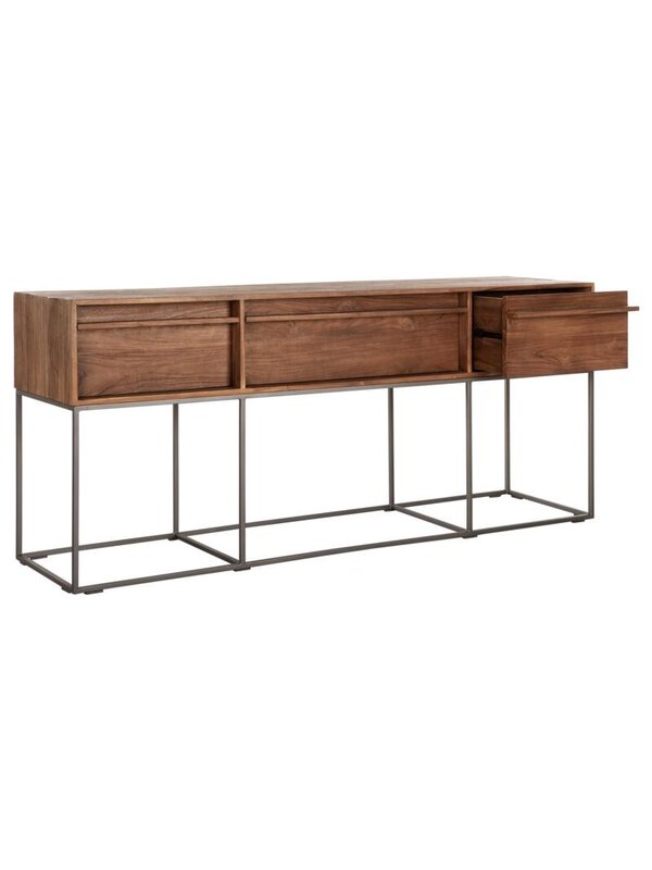 Wandtafel Splendida is gemaakt van gerecycled teakhout dat wordt gecombineerd met een strak en industrieel ijzeren onderstel. De wandtafel beschikt over drie lades en komt in bijna in iedere ruimte van pas! De Splendida geeft een stoere, maar toch warme ‘touch' aan je interieur. Wandtafel Splendida heeft een afmeting van 78x180x45 cm.