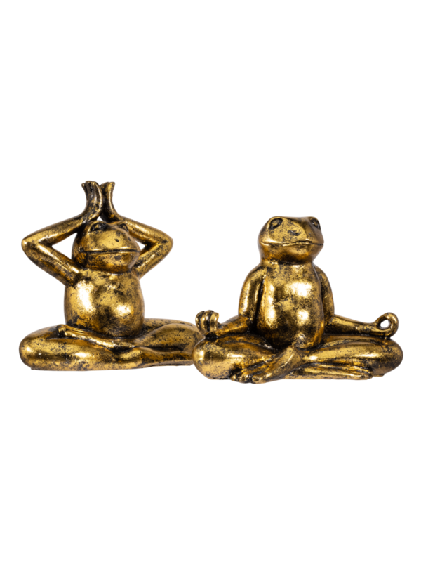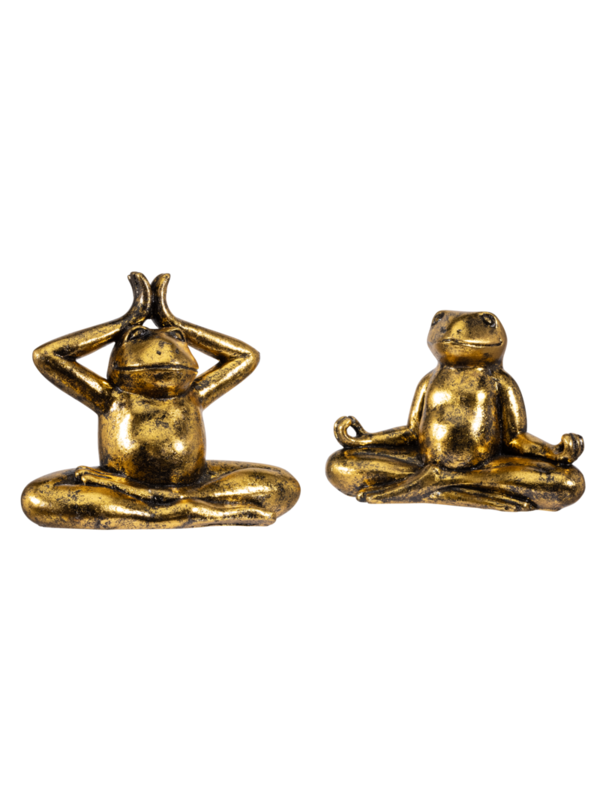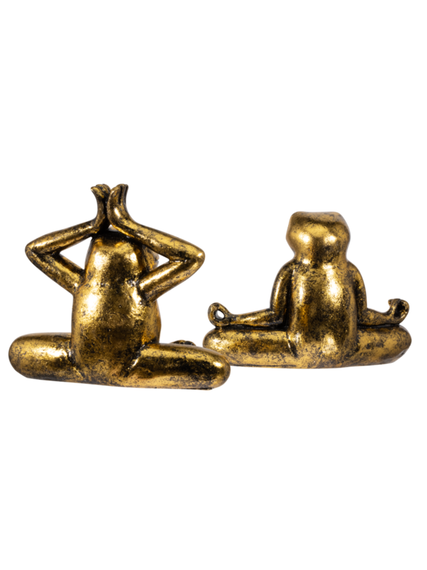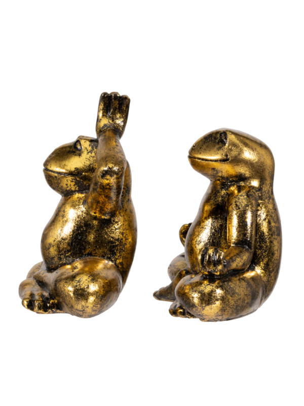 In een sfeervol interieur vol zwarte details, velvet en marmer voegen ze ambiance, luxe en een speelse touch toe. Maar ook in andere interieurstijlen vind je er vast een mooi plekje voor. De beelden zijn gemaakt van polystone, een zwaar kunststeen van goede kwaliteit. De yoga kikkers hebben een afmeting van 19x25x13 cm / 21x25x10 cm.